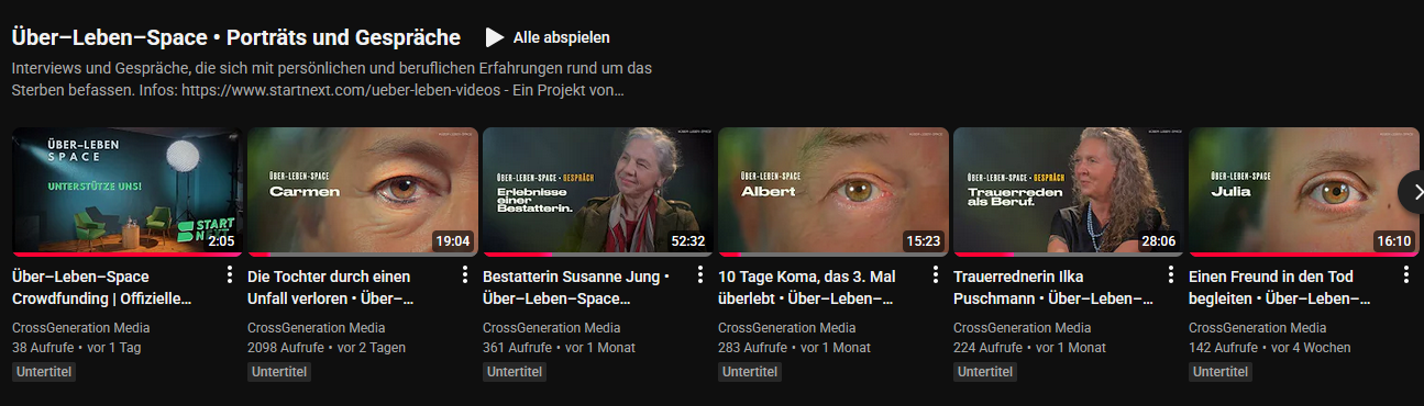 In unserem Videopodcast erzählen Menschen über ihre persönlichen und beruflichen Erfahrungen mit dem Tod.